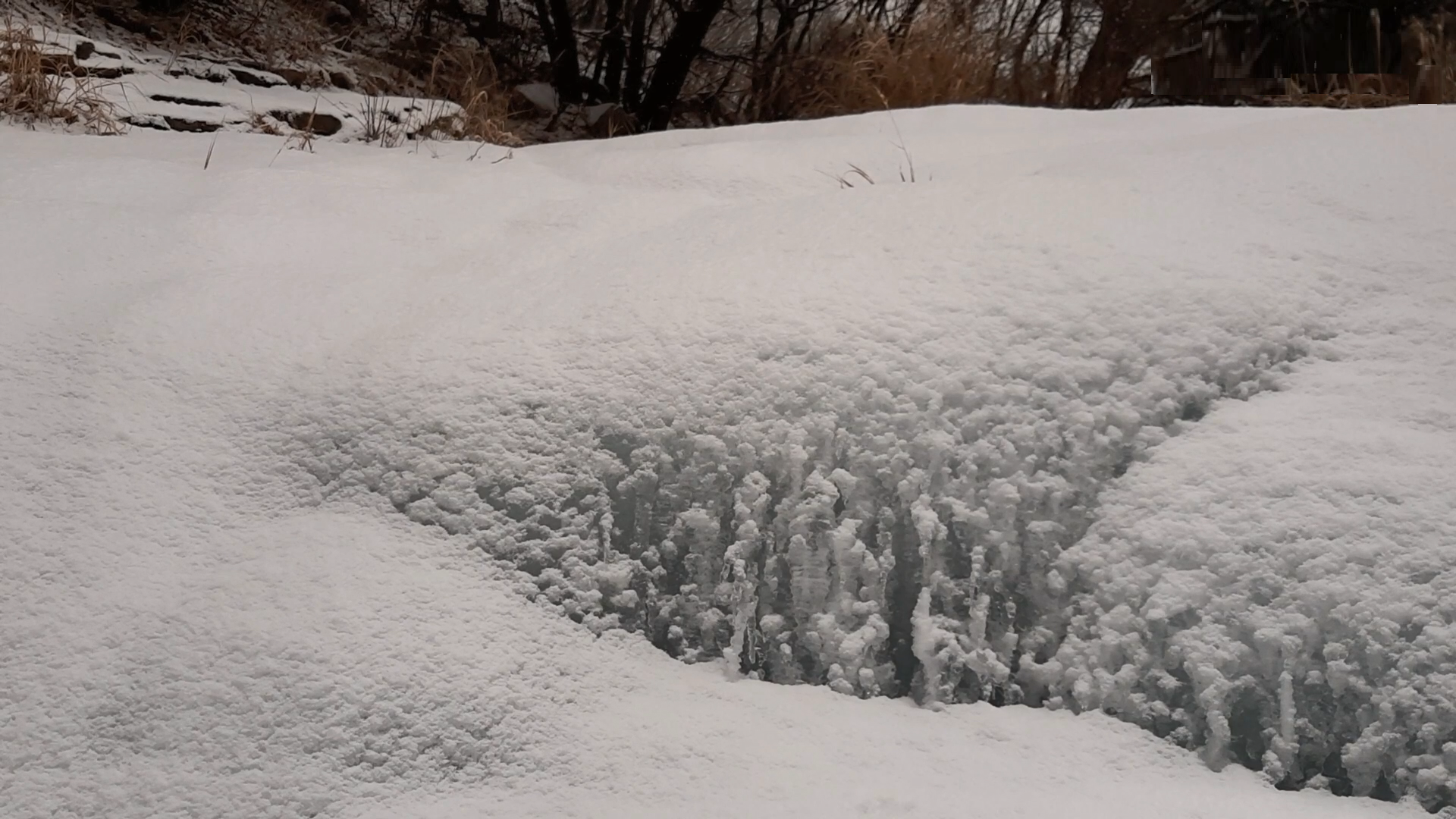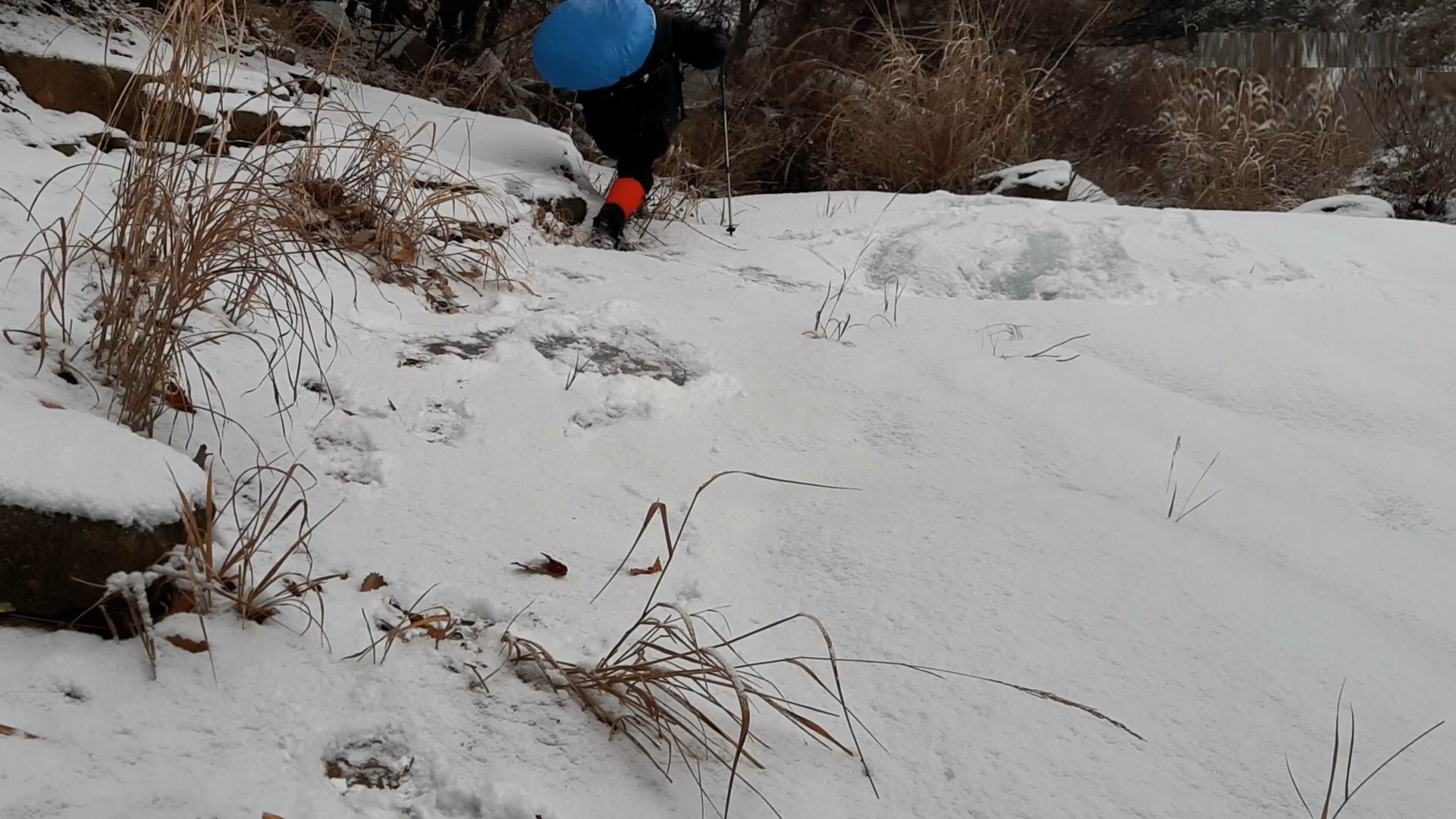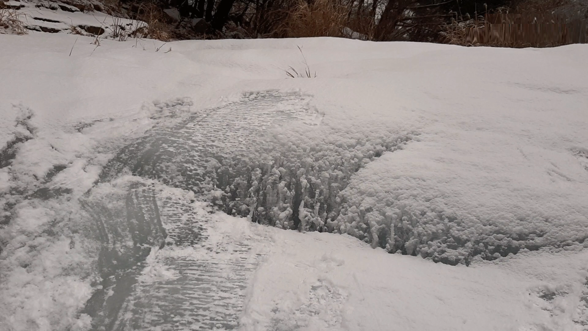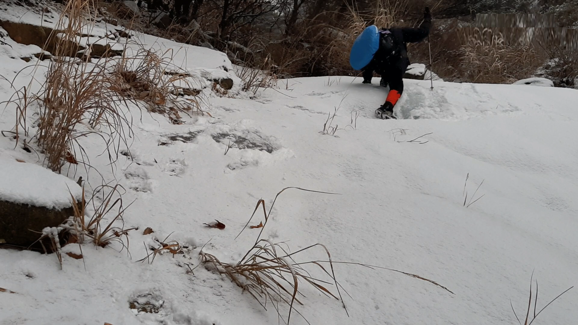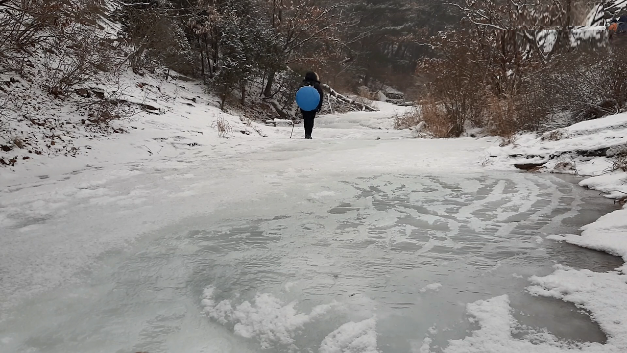 아주 단단하게 꽁꽁 얼어버린 계곡의 미끄럼은
