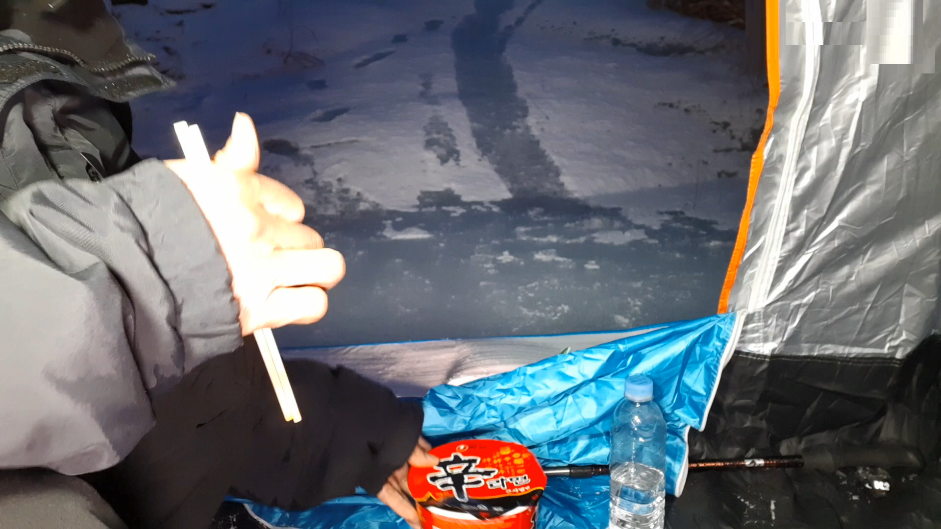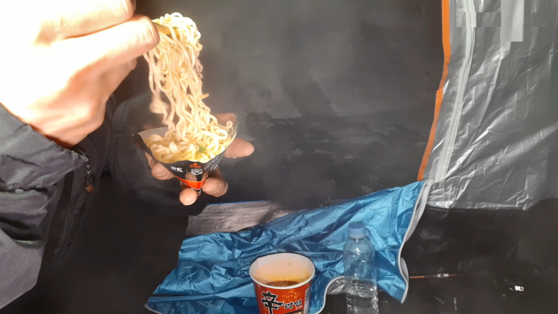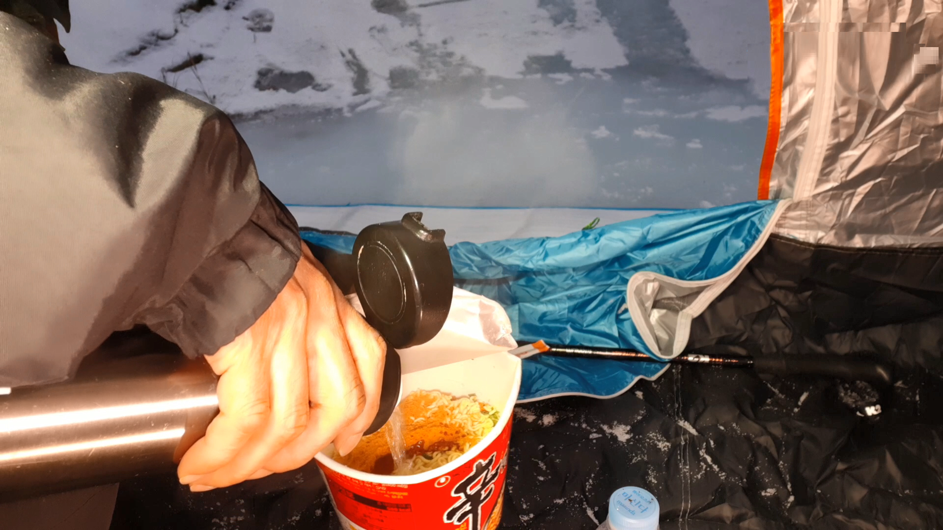 아름다운 얼음계곡에서 컵라면이라니..