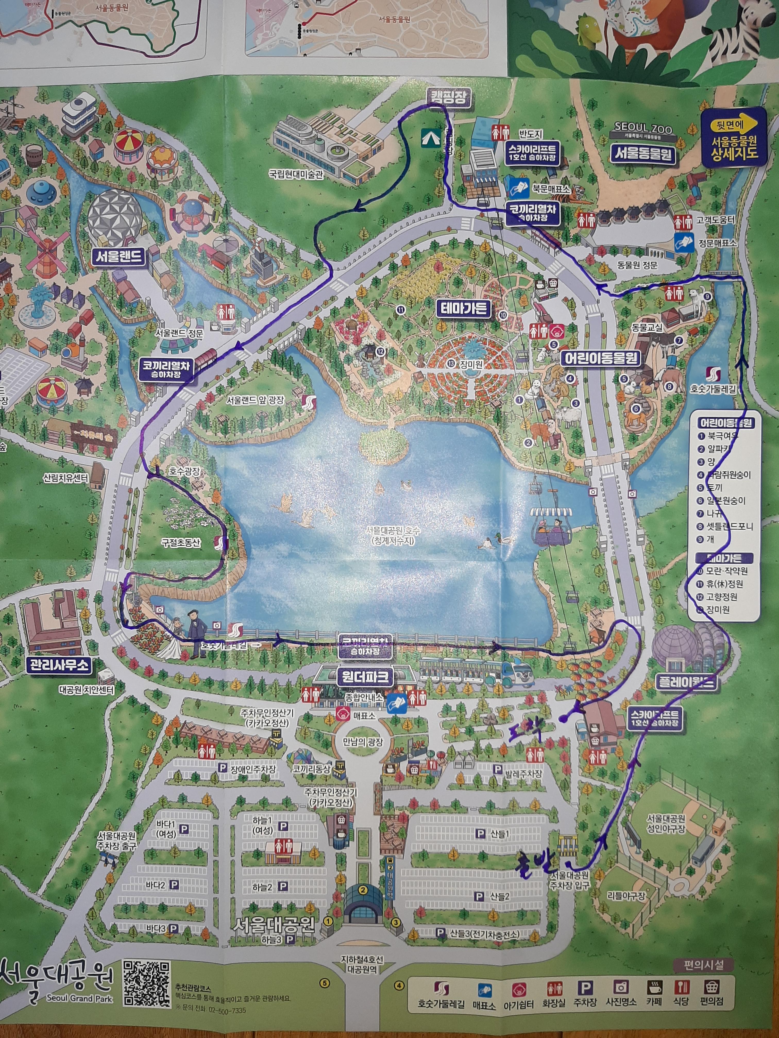 아래 사진으로 첨부한 '서울대공원 동물원 둘레길 및 산림욕장길 안내' 지도를 참고하세요.