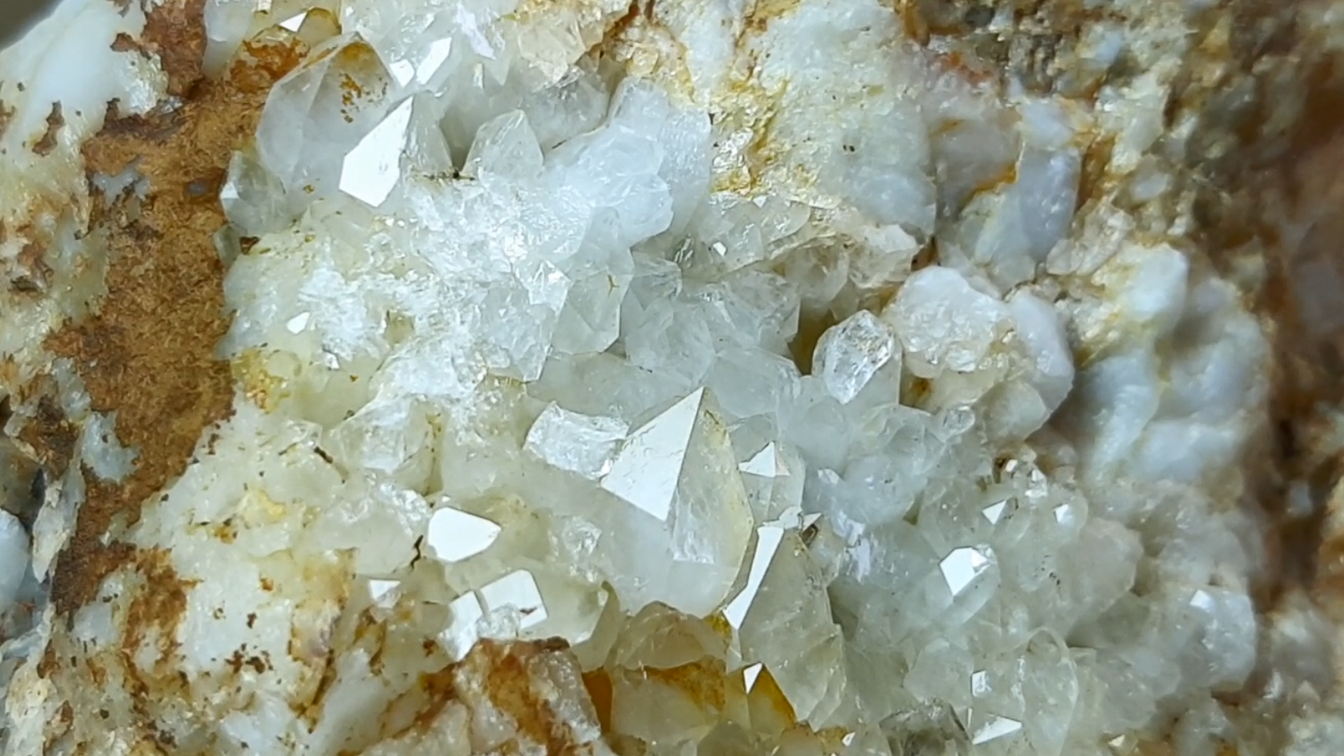 원석 한쪽 표면에 수정 결정들이 빼곡히 형성돼 있습니다.