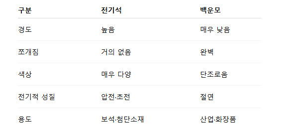 전기석은 마찰·가열 시 전기가 발생하는 특성이 있습니다.