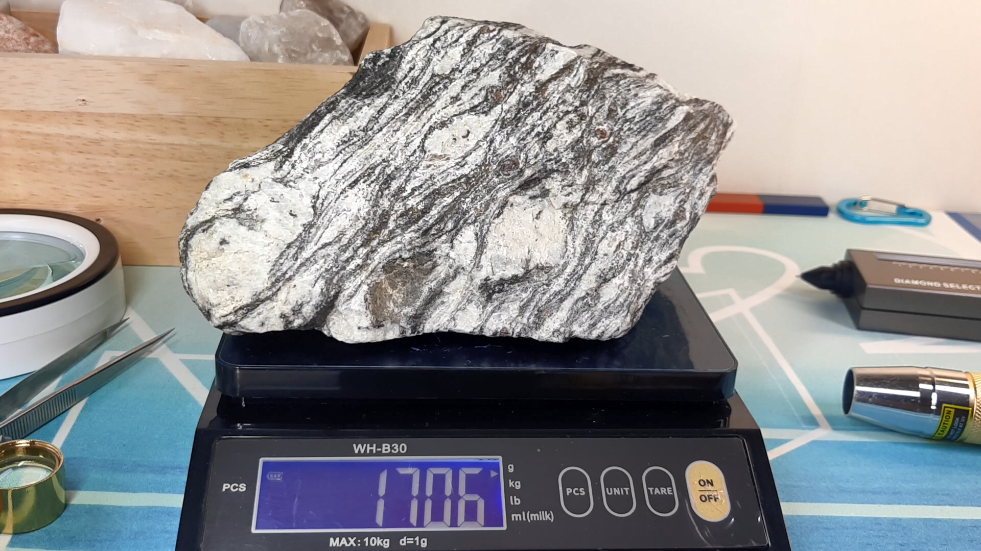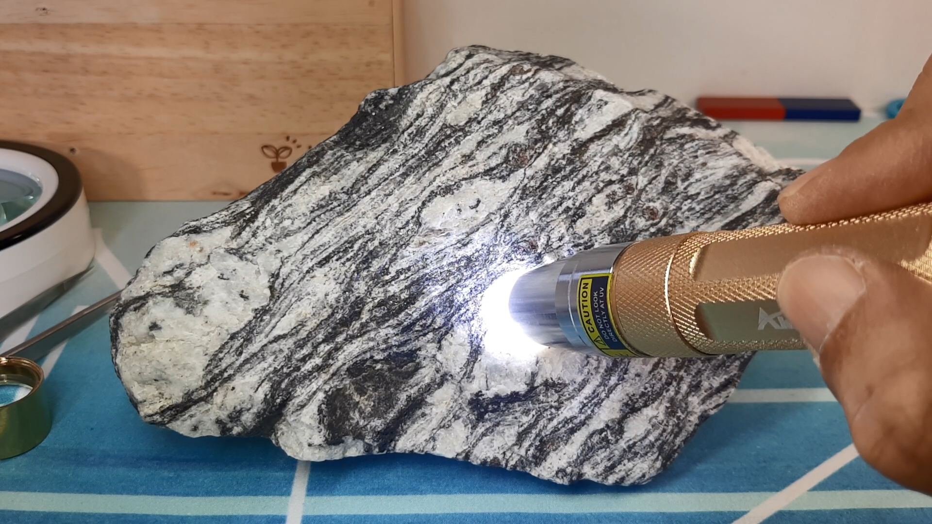 탐구할 암석표본은 안구상 편마암 천연원석입니다.