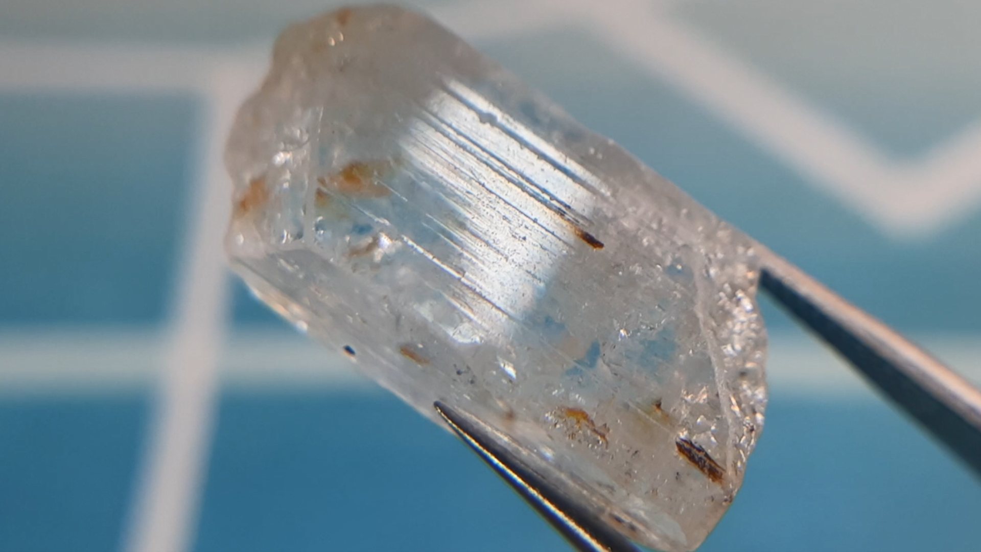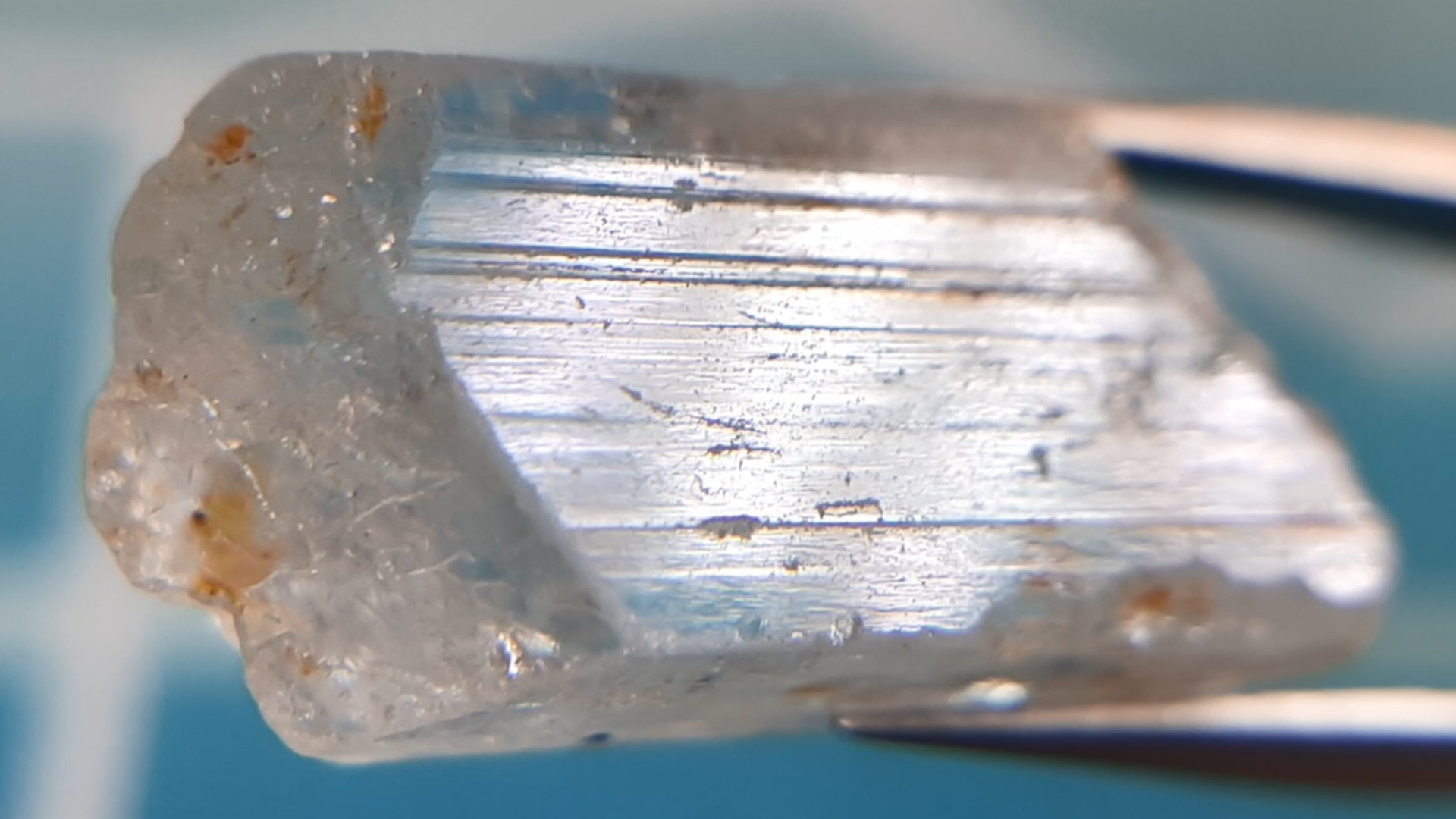 결정 표면에 보이는 토파즈 특유의 스트리에이션(Striation, 가는 줄무늬) 또한 매력적입니다.