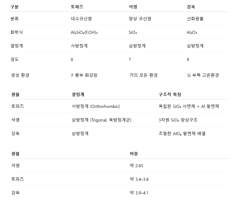 - 토파즈, 석영, 강옥 결정 구조(Crystal Structure) 차이점