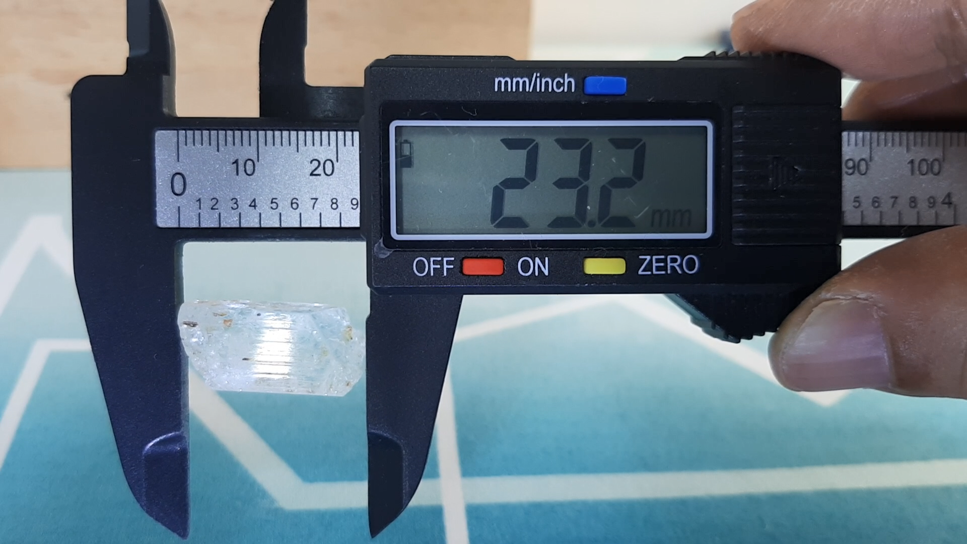 크기 2.3 x 1.2 x 1.1 Cm, 무게 7.9g(39.5 캐럿 Carat) 입니다.