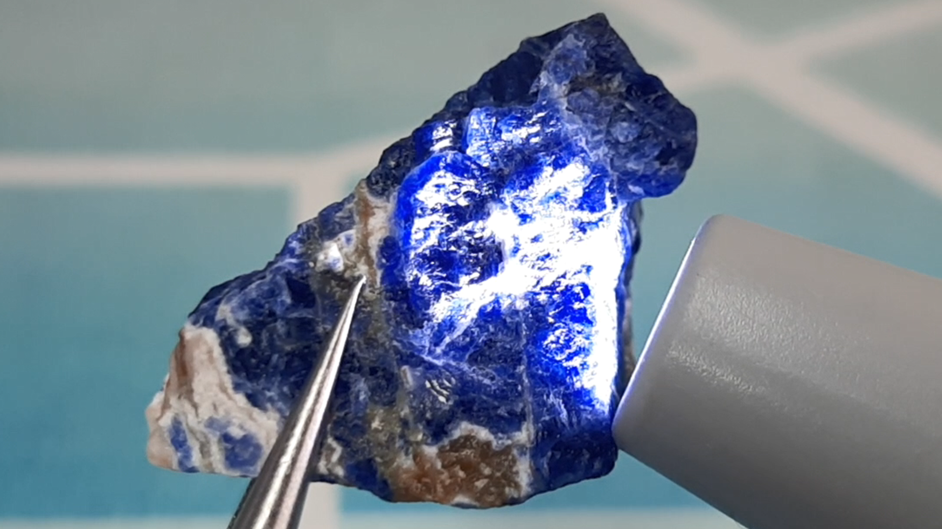 그리고 방해석(Calcite, 흰색), 방소다석(Sodalite, 소달라이트, 청색),
